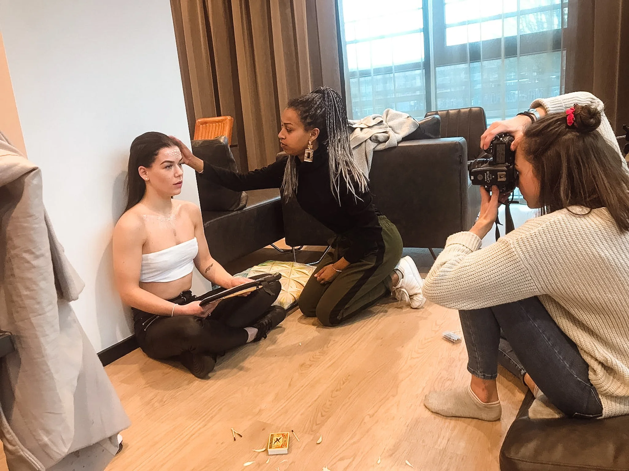 I’m a pretty social person, that displays itself in the diversity of my friends. One of my friends has a passion for photography, and together we came up with a spontaneous initiative- a photoshoot. I was in charge of the art direction and concept, and she took care of the photographic aspect. As we where looking at locations, I was able to reserve a conference room in the Hotel I worked at the time. Collected a couple of friends who where enthusiastic to participate and weren’t too camera shy. It was amazing to work together as young creatives, and besides the lovely pictures, we had an amazing day together.